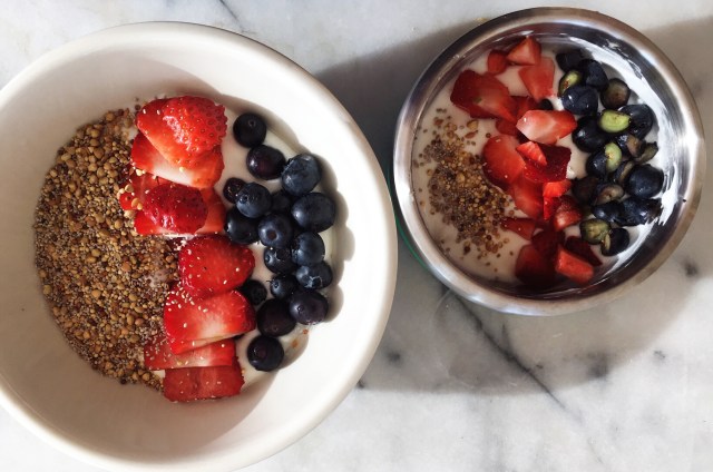 Here are the ingredients in Everett’s yogurt bowl, I use organic foods whenever possible. Don’t forget to make one for yourself!